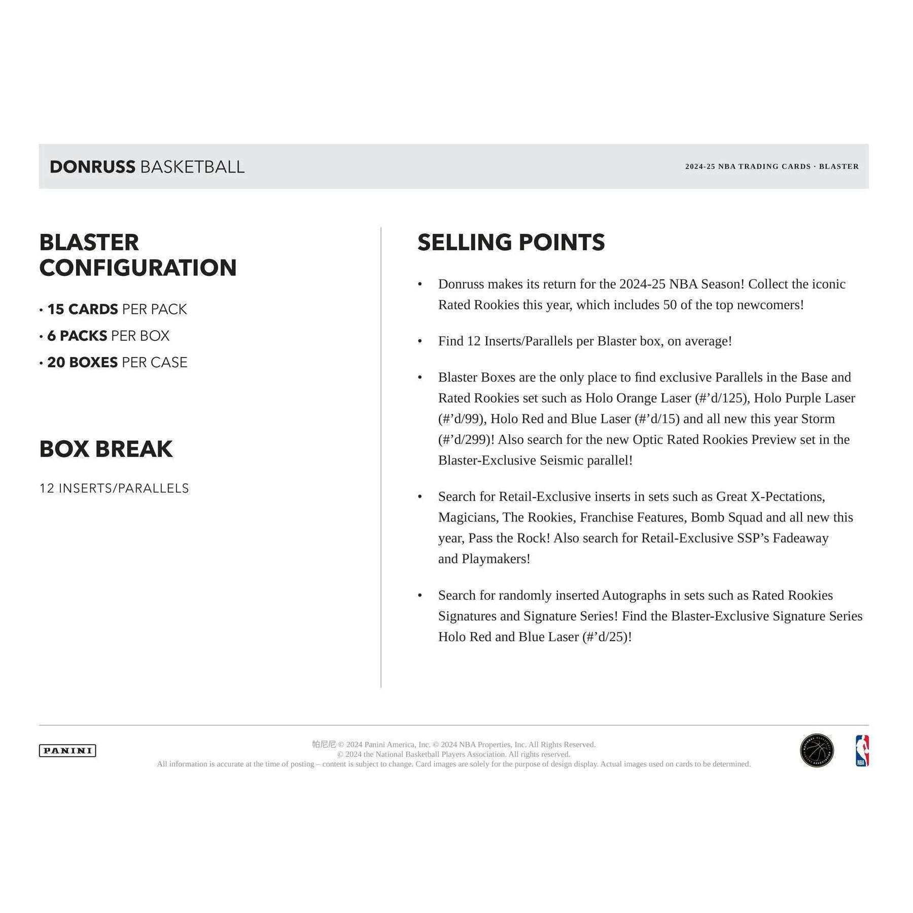 Donruss makes its return for the 2024-25 NBA Season! Collect the iconic Rated Rookies this year, which includes 50 of the top newcomers!